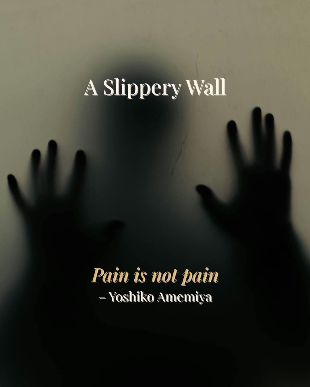 PoemsA Slippery WallA Poem (originally published on Twitter on Sep 10, 2025)Yoshiko AmemiyaDec 26, 20252SharePain is not pain***She clung Addicted Couldn’t stopThe tighter she held…the more she slipped.One day…she let go."Oh…my hands…don’t hurt anymore."Thank you for reading.PreviousNext